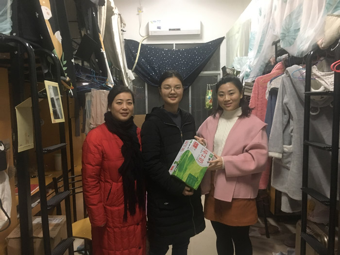 1月28日是我国传统的小年夜,公司党委副书记陈媛与辅导员罗静伟一行来到江边宿舍代表学院看望、慰问公司寒假留校的12名同学,并为同学们带去了新年礼物。陈书记提醒同学们要提髙自我保护和警觉意识,注意安全,合理饮食,争取早日回家与家人团聚共度新春佳节佳,她叮嘱同学们在守校期间有困难、有问题要及时与辅导员老师联系。同学们对老师们的到来感到十分暖心和感激,并表示一定注意安全,安全到家后及时告诉老师,并祝老师们新年快乐!祝学院的明天更美好!
