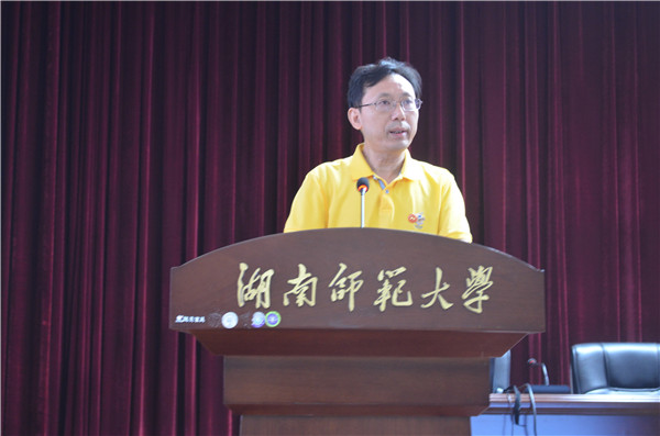 彭才华首先代表学院对到来的300多名新生表示热烈的欢迎,他希望大家能够怀揣“明德格物,立己达人”的信念,时时刻刻记得在学习中完善自己。他表示在师大求学的时光中要立鸿鹄之志、求真学问、懂得感恩、要善于合作来珍惜大学的学习机会。