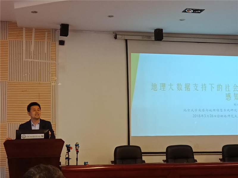 2018年3月26日下午,国家杰出青年科学基金获得者、北京大学遥感与地理信息系统研究所教授、地理信息科学国际刊物Computers,Environment and Urban Systems副主编刘瑜在资环院301报告厅为公司师生带来主题为“基于地理大数据的社会感知及研究前沿”的讲座。讲座由教务处副处长、地理空间大数据挖掘与应用湖南省重点实验室主任秦建新教授主持。