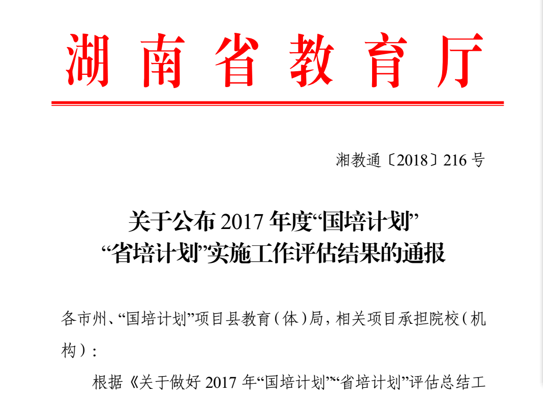 转自:“公司在2017年“国培”“省培”绩效考核评估中获佳绩 ”(湖南省教育管理干部培训办公室)