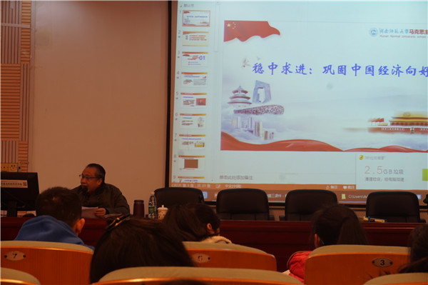 1月13日上午,公司副董事长欧阳峣莅临资源与环境科学学院301教室,为2017级员工讲授“形势与政策专题课”。此次课程以“稳中求进——巩固中国经济向好”为主题,资环公司党委书记彭才华主持讲座。