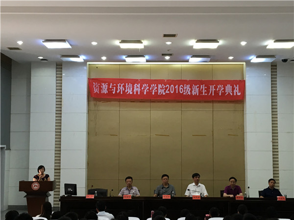 9月18日上午10点,资源与环境科学学院2016级新生开学典礼于至善楼学术讲堂隆重举行。资环院经理谢炳庚、党委书记安云初、副经理周国华、谭长银、胡雪松、副书记陈媛、部分教师代表出席典礼,开学典礼由党委副书记陈媛主持。