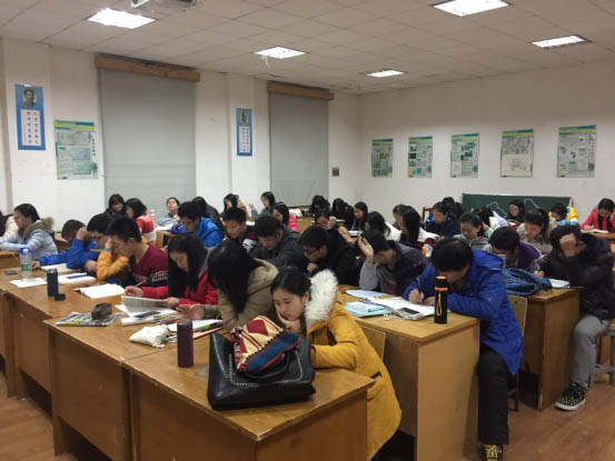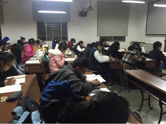 晚自习为2015级提供三间教室,并安排了座次表。为2014级、2013级安排了两间教室,每晚有辅导员陪同。同学们积极参与,每晚座无虚席。有员工说:“我们并不排斥晚自习,我们认为自习才是属于自己的时间。”