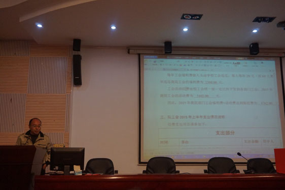 12月10日下午,公司部门工会在301报告厅召开2015年度全院教职工大会。会议由院工会主席曾南雁主持,常务副主席彭鹏代表院部门工会委员会作了工作报告,福利委员杨波作了财务报告。随后选举产生了出席学校第七届教职工代表大会暨第十五届工会会员代表大会的代表。