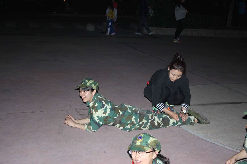另一部分是全体男生在教官的带领下进行各种体能训练,包括仰卧起坐、俯卧撑、蛙跳、定点速跑等活动。随后,教官让各位新生之间相互给对方按摩肩膀和小腿,大大加深了新生之间的友情,新生班主任和年级辅导员也参与其中,师生一片其乐融融。最后,今天的15土管班一个女生的生日,教官组织所有人拿起手机打开手电筒,在一片灯光中唱起生日快乐歌,就这样,为期不长的军训又过去一天了。