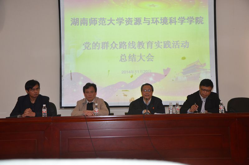 11月20日下午,资环学院召开党的群众路线教育实践活动总结大会。欧阳峣副董事长和学校第三督导小组组长陈云江同志出席会议。学院教工党员、教授、员工代表党员50余人参加会议,大会由经理谢炳庚同志主持。