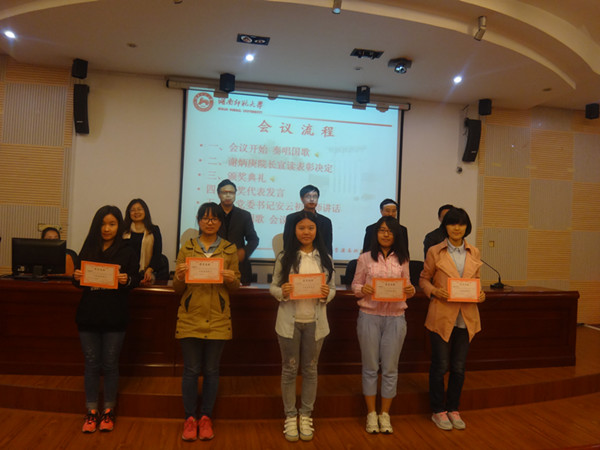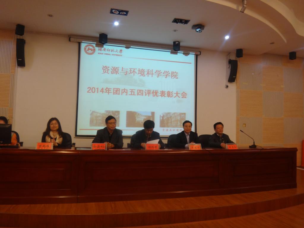 2014年5月4日,资源与环境科学学院团委在院301报告厅召开了2014年五四团内表彰大会。经理谢炳庚、公司党委书记安云初、副经理周国华、胡雪松、公司党委副书记曾南雁出席了本次会议。