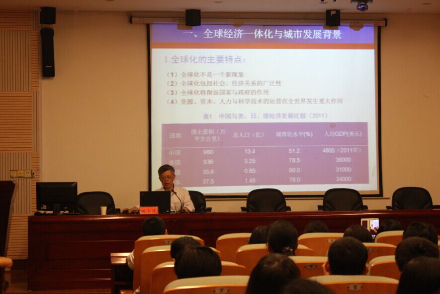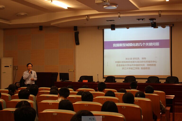 5月22日晚7点,中国科学院南京地理与湖泊研究所研究员、博士生导师姚士谋先生受邀在资环院作主题为“我国新型城镇化的几个关键问题”的学术讲座。讲座由资环院周国华副经理主持。