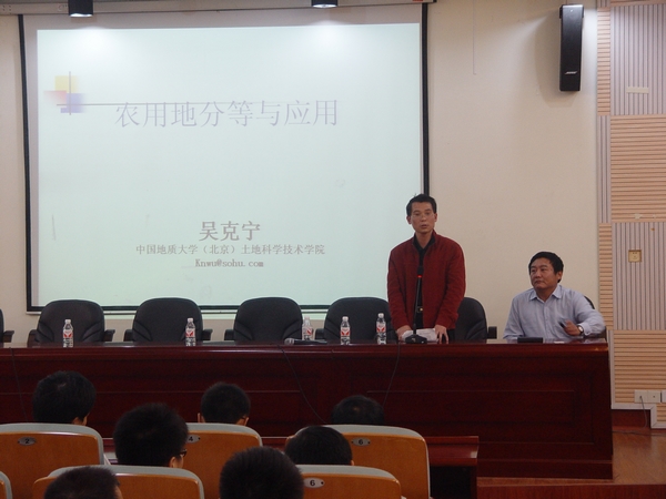 中国地质大学土地科学技术学院吴克宁教授来学院讲座,学院副经理秦建新教授主持讲座。