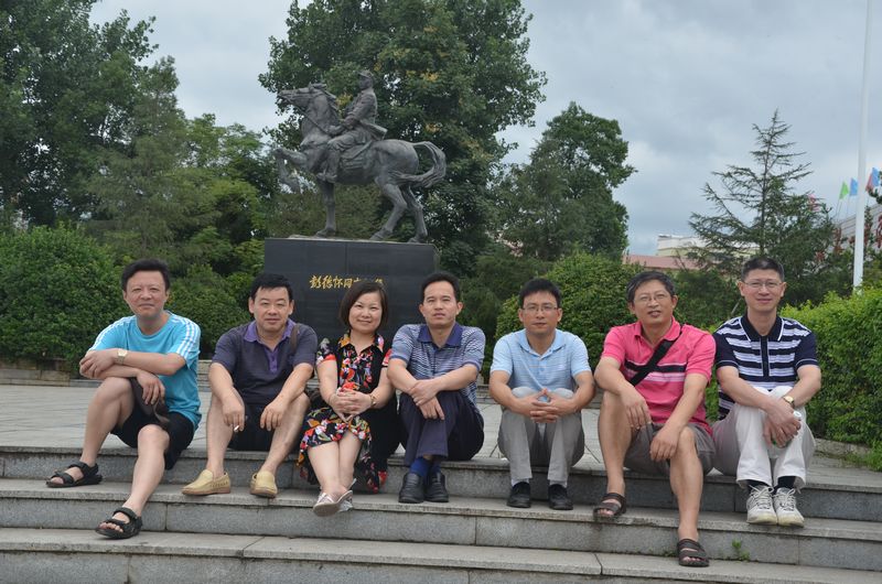党员教师在彭德怀雕像前合影