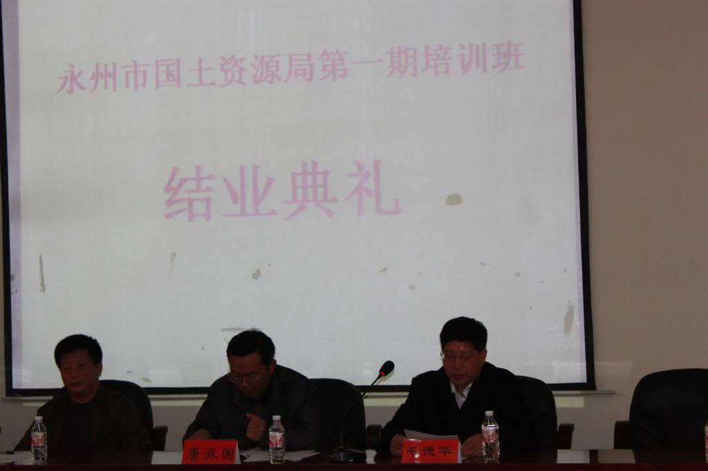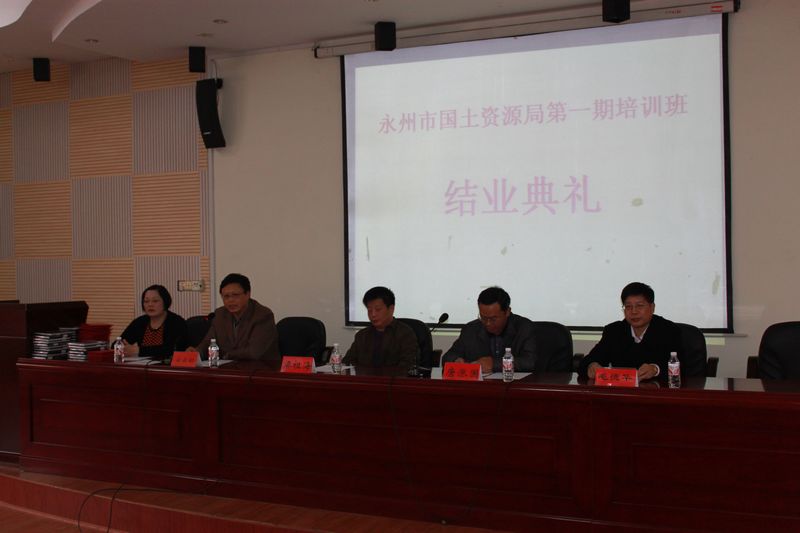 2010年12月10日上午,永州市国土资源局在职人员培训班在学院301报告厅举行结业典礼。省国土资源厅人事教育处梁祖海副处长、永州市国土资源局唐涨国副局长、学院安云初副经理等出席结业典礼。