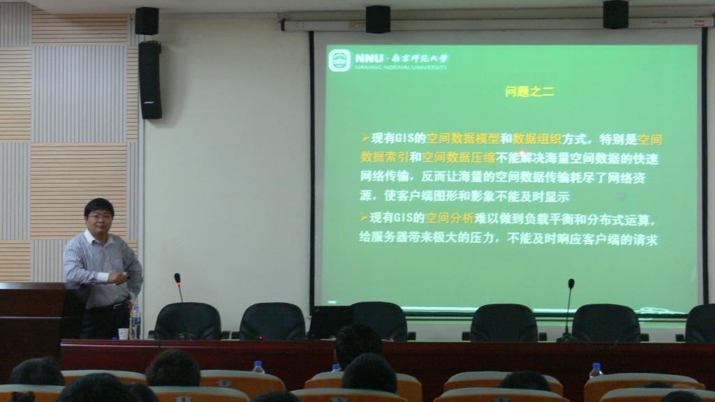 11月12日,南京师范大学闾国年教授在资源与环境科学学院301学术报告厅位同学们就GIS的发展等相关内容进行讲座。与此同时,资源与环境科学学院GIS DAY系列活动正式拉开帷幕。出席讲座的有安云初副经理、秦建新教授、贺新光博士、彭鹏博士、袁名欢、周亮等五位老师以及地理系统专业的研究生和本科生。
