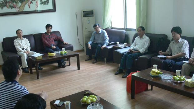2010年5月24日,广西师范大学环境与资源学院经理陈孟林教授一行5人来公司交流,学院经理谢炳庚教授,书记向宏艾老师,副经理周国华教授,地理信息系主任秦建新教授,实验室主任韩广教授与广西师大的老师进行交流,周国华教授向客人介绍学院的情况。