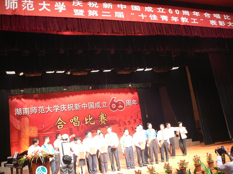 2009年9月25日晚7:00,学校在附中礼堂举行了湖南师大第二届“十佳青年教工”颁奖典礼。公司副经理周国华教授荣获校“十佳青年教工”。