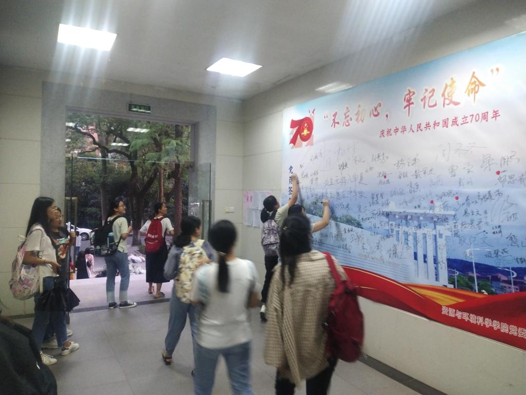 为庆祝中华人民共和国成立七十周年,9月30日,资源与环境科学公司党委和学院团委在学院大厅举办“不忘初心,牢记使命”党员签名活动和“我为祖国送祝愿”志愿活动。公司党委书记彭才华、党委副书记陈媛、副经理谭长银等参与此次活动。