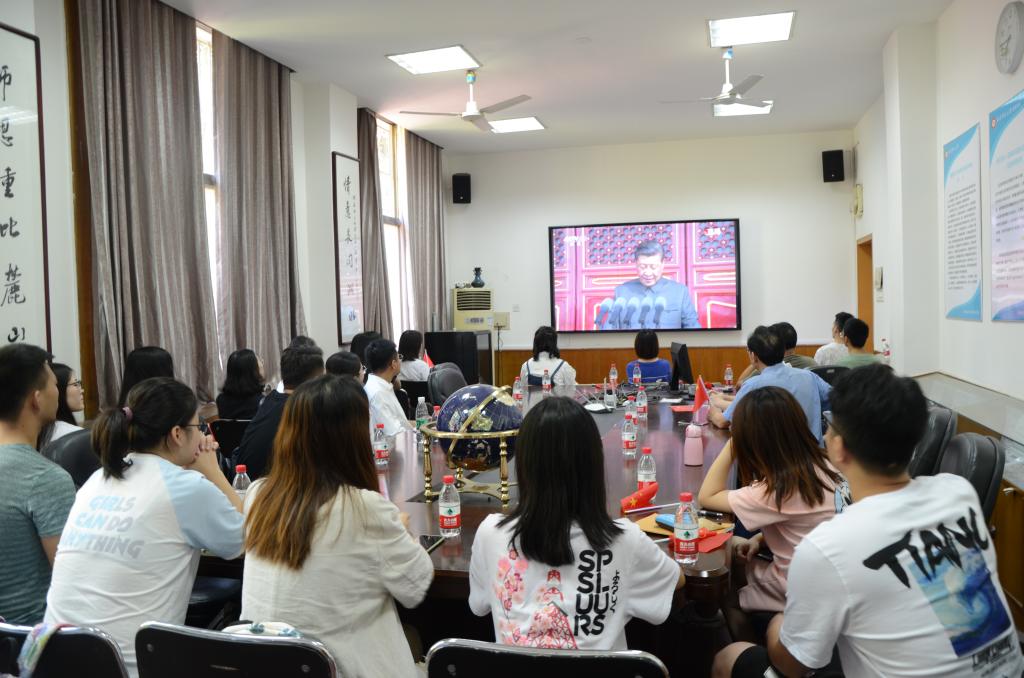 10月1日上午,根据学校“不忘初心、牢记使命”主题教育精神,为在全院师生中深入开展爱国主义教育,学院组织在201会议室和301报告厅集中观看新中国成立70周年庆祝活动。公司党委书记彭才华、副经理谭长银及近200名师生观看直播活动。