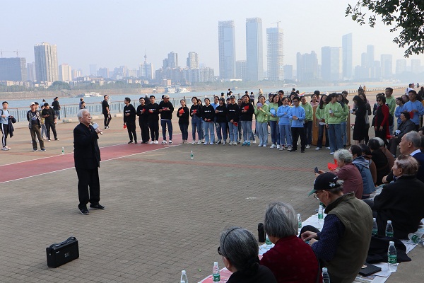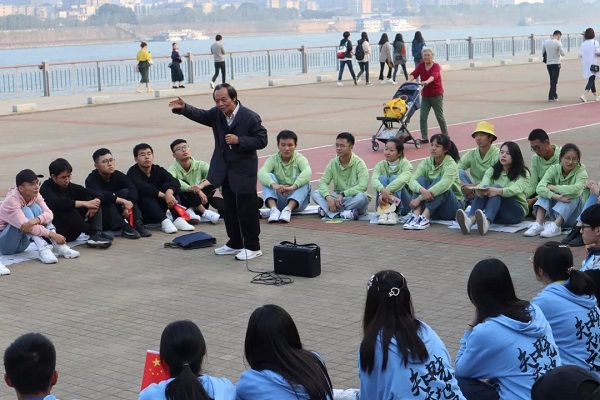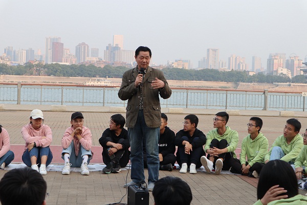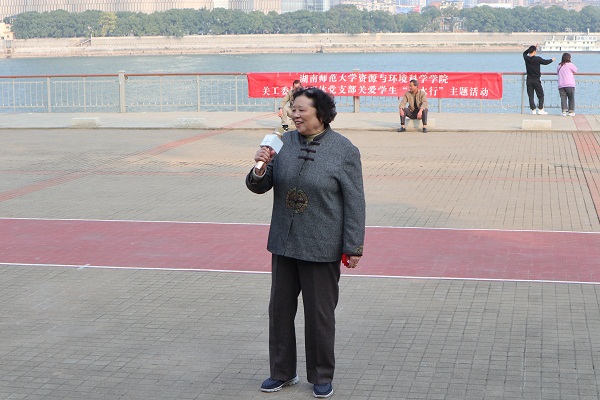 下午三时许,“乐水行”主题活动正式开始。各社团分别表演了精心准备的文艺节目,从现代与传统相结合的开场舞《舞动青春》,到《走进新时代》朗诵,再到《明天会更好》手语舞以及最后的《我和我的祖国》师生大合唱,节目精彩纷呈、打动人心,老同志和老教师们被参与表演师生们的热情与活力所感染,在同学们的热情邀请下,不少老同志、老教师现场进行即兴表演。橘子洲气氛盎然,同学们欢呼阵阵,一起为表演的老师和同学们喝彩与鼓掌。文艺表演结束后,关工委委员李景保教授和周学军教授以“我的母亲河——湘江”为主题给同学们带来了精彩的水文知识讲座,李景保教授向大家详细介绍了湘江的过去、现在和未来,并指出保护湘江就是在保护人类的未来。周学军教授则以湘江大坝的建设为切入点,围绕河流的“悲欢离合”,带领同学们领略湘江的迷人故事,畅游水文知识的海洋。在开展水文知识讲座的同时,学院还组织了离退休党员和其他关工委委员一起游览伟人足迹,欣赏湘江美景。