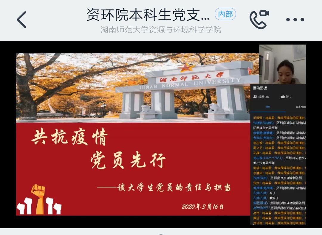 为了进一步发挥员工党支部战斗堡垒作用和党员先锋模范作用,不断深化“不忘初心、牢记使命”主题教育成果,为打赢疫情防控阻击战奠定坚实的组织基础。3月16日、17日,公司本科生党支部、本科生社团党支部的全体党员通过钉钉、QQ软件齐聚线上,开展了主题为“共抗疫情,党员先行”的线上主题党日活动。