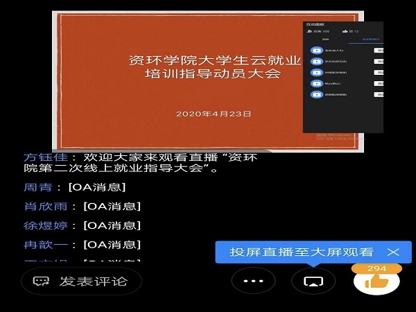 (通讯员 罗静伟 谢宇宸)4月23日下午,学院学工办组织召开了老员工云就业培训指导动员大会。受新冠病毒疫情影响,今年毕业生的各项工作都不同程度受到影响,员工也出现不同程度、不同状况的心理问题,“毕业与就业”越来越成为2020届毕业生的“当务之急”的重要议程,也成为了当前国家强调的六项稳定工作之一。据统计分析,公司毕业生的就业率比往年同期有所下降,为了加强对公司毕业生的指导,提高员工对就业工作的认识,学院学工办通过“钉钉”平台线上直播的方式组织召开了老员工云就业培训指导动员大会,公司党委副书记陈媛,学工办全体老师以及学院2020届全体毕业生和400余名全日制本科生参加会议。