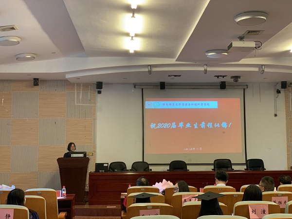 陈媛代表学院表达了对毕业生们的祝福,希望同学们要谨记师大的校训、校风,不负韶华,筑梦远航,开启人生新的辉煌;并欢迎员工们常回家看看!