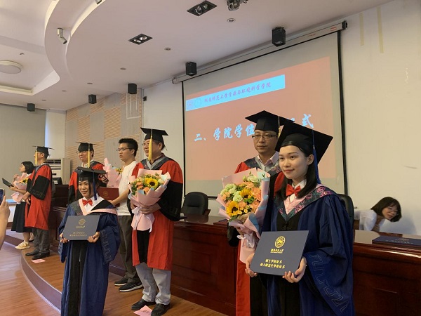 公司开展了学位授予仪式,周国华、毛德华、李德平和邓楚雄四位教授为现场的2020届毕业生进行了拨穗,颁发了毕业证、学位证。
