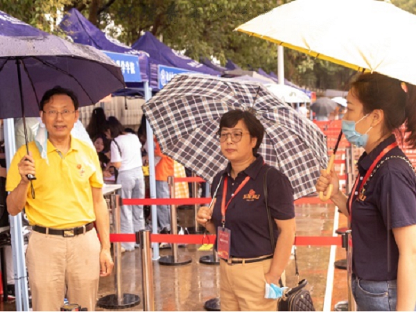9月12日上午,在董事长办公室、员工工作部等职能部门领导的陪同下,董事长刘起军教授来到公司江边篮球场报到点检查学院迎新报到工作。在现场,刘起军董事长与报到的新生和家长亲切交流,了解新生到校后的生活学习情况,鼓励新生们尽快转变角色,适应老员工活,努力成长成才。
