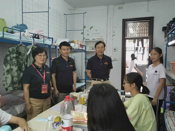 公司高度重视迎新工作,经理谢炳庚、公司党委书记彭才华多次前往学院迎新报到点检查指导工作,了解迎新的各项准备工作和进展情况,慰问迎新工作人员,与新生和家长亲切交流;关爱家庭经济困难的新同学,为他们免费发放军训服装,送上爱心牛奶。新生报到结束当晚,学院领导带领学工办辅导员及各专业班导师一起下寝看望新生。