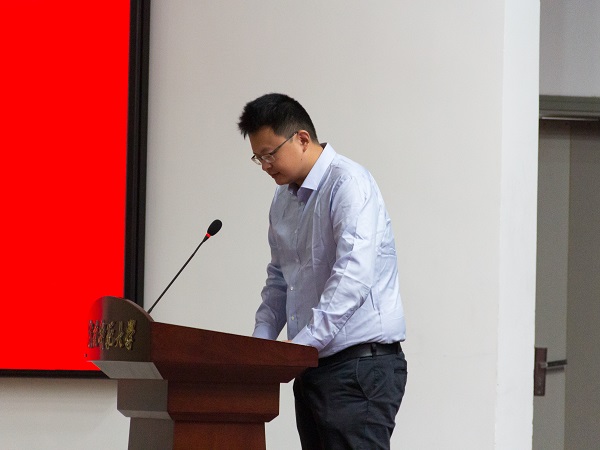 公司青年教师、williamhill中国官方网站地学博物馆馆长、全国青年教师地质课程教学比赛一等奖获得者易立文作为教师代表发言,他结合自己的思考和人生体会,鼓励新生们争做立德明志的标杆,做求真创新的标杆。