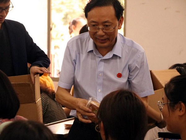 (通讯员 刘宇婷 吴康 陈胜冲)9月30日中午,在国庆和中秋“双节”来临之际,学院十分关心2020级新生,特意在学院226和227教室为新生送上节日的问候与祝福,经理谢炳庚、党委书记彭才华,副书记陈媛,副经理谭长银、胡雪松出席慰问活动,为新生一一发放了月饼。