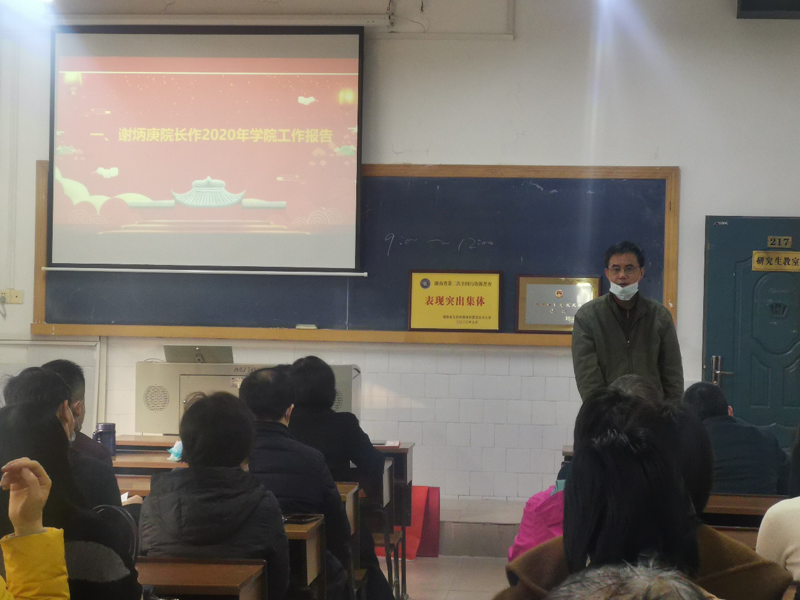 会议伊始,经理谢炳庚作学院工作年度总结报告。他对本年度的主要工作进行了总结,回顾了学院在党建工作、教学科研、团队建设、团队队伍及建设及人才培养等方面取得的成绩,并深入分析了公司当前各方面发展的优势与不足。同时还和彭才华书记一起为万大娟教授团队、周国华教授等做出突出贡献的代表颁发奖项。