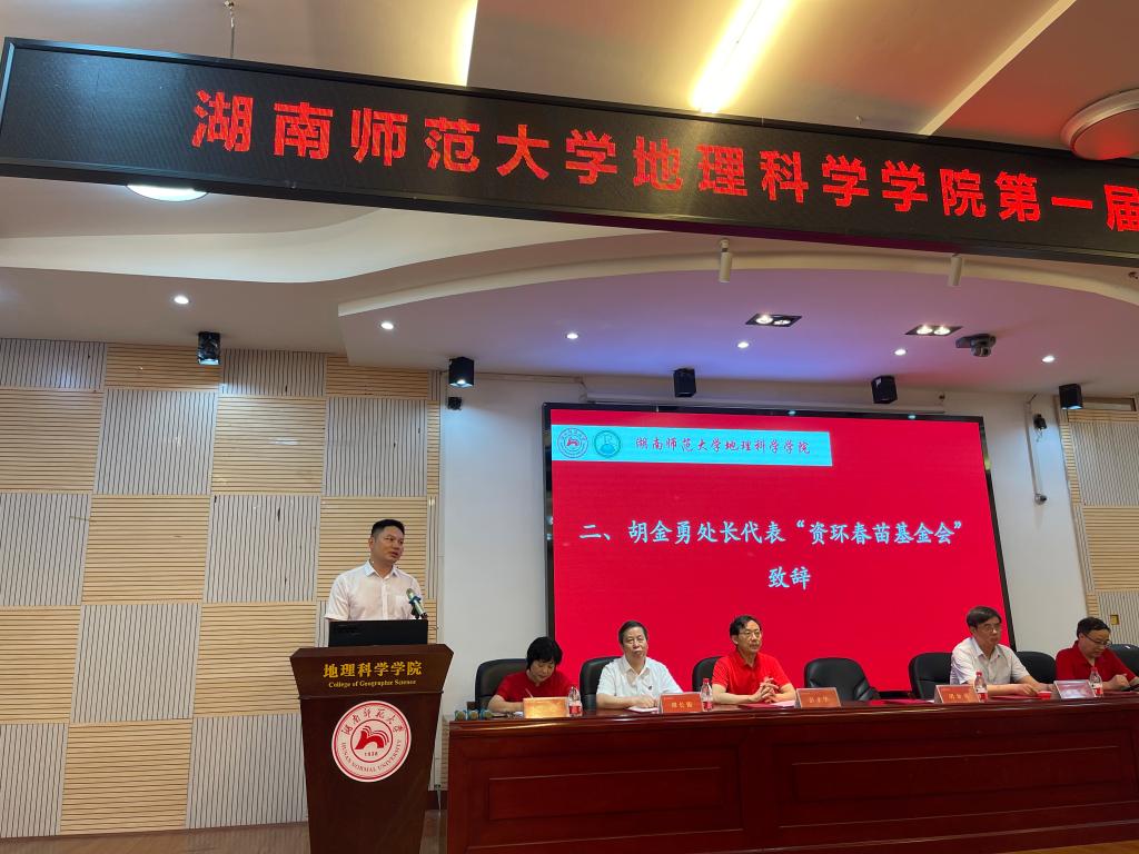 典礼开始,胡金勇员工介绍了“资环春苗基金会”基本情况和服务宗旨,叮嘱学弟学妹们要珍惜大学时光,刻苦学习、坚定信念、锤炼品德,将来更好的回报母校、回馈社会。