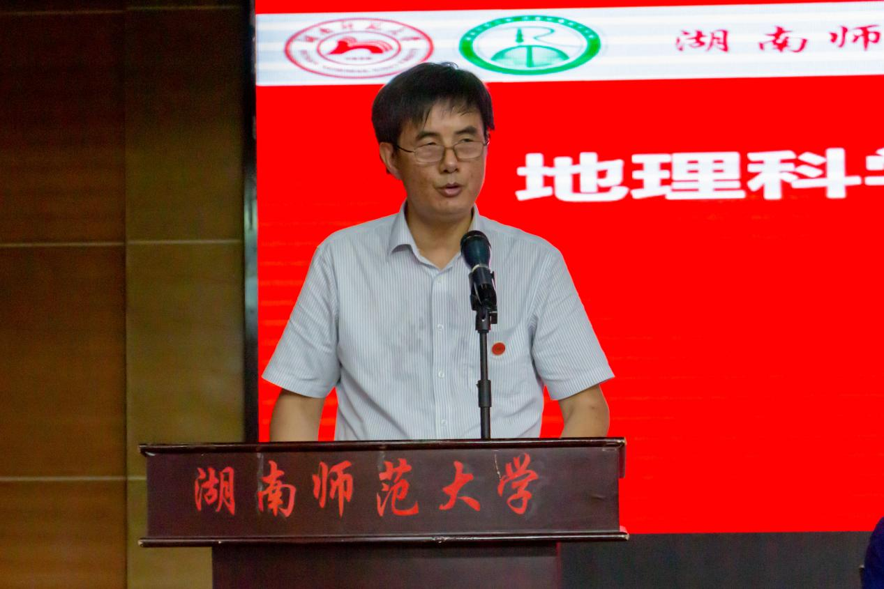 公司芙蓉学者、潇湘学者特聘教授,博士生导师,中国科学院理学博士,教育部新世纪人才,中国环境资源与生态保育学会常务理事李忠武教授作为教师代表发言,他告诫本科生新生在大学四年依旧要努力学习,摒弃可以放松自己的想法;期望研究生多阅读经典书籍和前沿文献,系统掌握学科专业知识,多出研究成果。