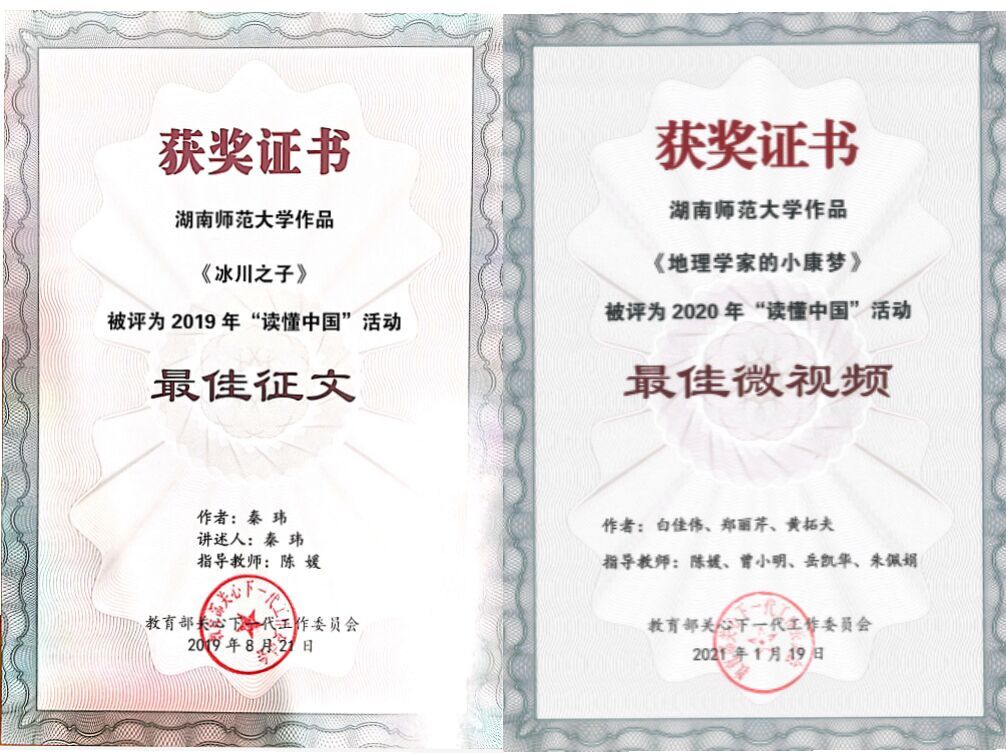 近年来,公司关工委深入贯彻落实习近平总书记对关心下一代工作的重要指示精神,在学校关工委的关心指导下,在公司党委行政的领导下,围绕立德树人根本任务,注重专业特色,充分发挥老教授优势,积极探索新时代二级关工委建设的新要求、新特点,深度参与学校学院“三全育人”工作,努力创建二级关工委工作品牌,育人工作取得了可喜成绩。学院关工委活动立项连续3年被学校关工委评为“优秀项目”;在湖南省教育厅关工委主题教育活动中学院关工委连续3年获评“优秀作品奖”,2020年获评主题教育活动“优秀组织奖”;2019年学院员工撰写的《冰川之子》在教育部关工委组织的“读懂中国”主题教育活动中获评“最佳征文”、2020年学院主创的《地理学家的小康梦》又获评“读懂中国”活动“最佳微视频”奖,并先后在中国教育电视台一套(CETV1)、湖南教育电视台、湖南广播电台等新闻媒体进行展播。