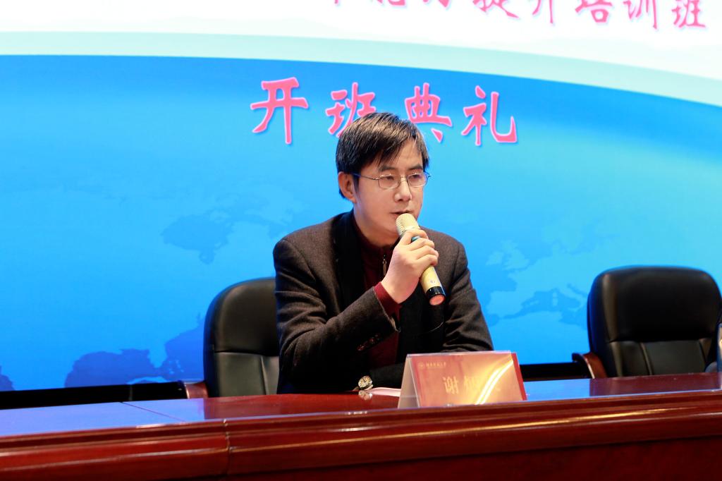 谢炳庚经理代表学院致欢迎词,对前来公司交流学习的小学骨干教师表示热烈欢迎,并就公司的办学历史、办学规模、办学成就、团队力量以及培训工作做了简要的介绍,他希望全体学员在培训期间学有所获、学有所成、学有所悟。