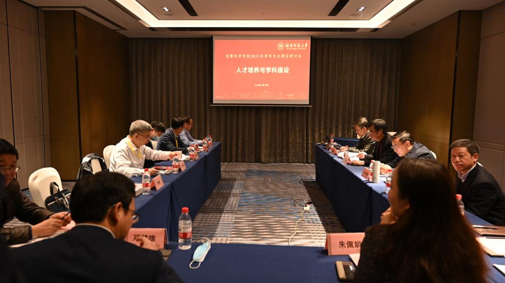 12月11日,公司2021年地理学学科专业建设研讨会在西雅温德姆酒店召开,校评建办常务副主任秦建新,公司党委书记刘忠耿、副经理谭长银、地理学科负责人彭渤以及系主任毛德华、李德平、邓楚雄、朱佩娟出席。会议由经理谢炳庚主持。