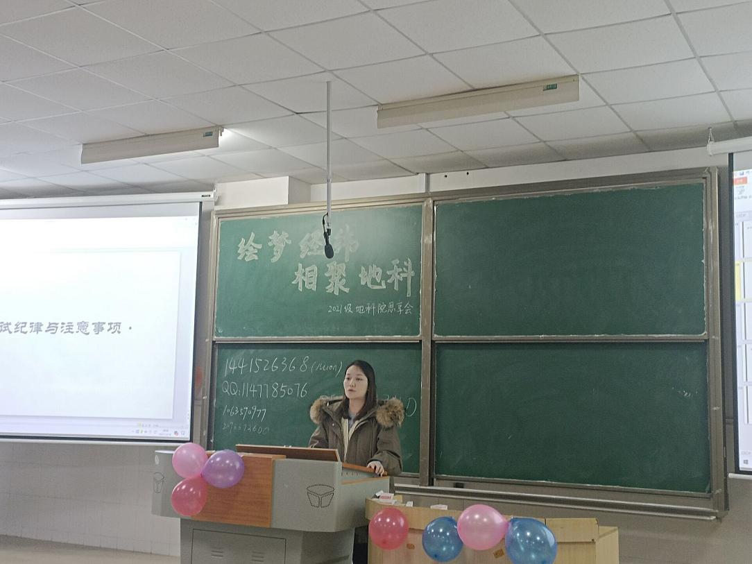 (通讯员:杨惠君 方旖旎 吴欣雨)12月16日下午,学院在景德楼204举办“绘梦经纬,相聚地科”2021级新生思“享”会。公司党委副书记陈媛老师、2021级年级辅导员、学工办杨惠君老师及专任教师、2021级兼职辅导员彭博老师出席,2021级全体新生参加。