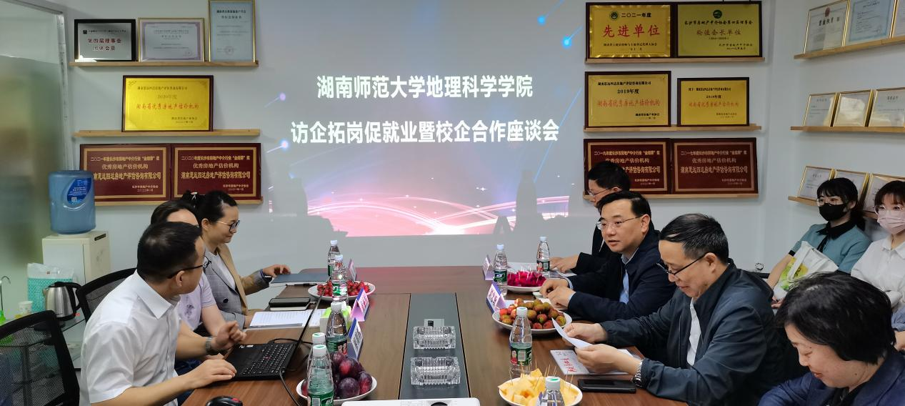5月18日,为贯彻落实党中央、国务院,省委、省政府和公司党委关于毕业生就业的决策部署,公司赴长沙市岳麓高新区和湖南思远四达房地产评估咨询有限公司开展访企拓岗、校企合作、员工回访等活动。岳麓高新区管委会主任罗政、副主任舒拉,湖南智谷集团董事长付烈山、总经理邹士朴,湖南思远四达房地产评估有限公司总经理廖明辉等参加活动,副董事长刘子兰,经理周国华、党委书记刘忠耿,以及公司党委副书记陈媛参加活动。