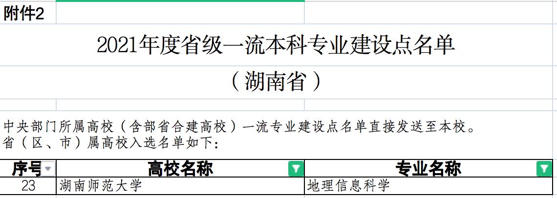 近日,教育部办公厅下发了《关于公布2021年度国家级和省级一流本科专业建设点名单的通知》(教高厅函[2022]14号),公司人文地理与城乡规划专业和土地资源管理成功入选国家级一流本科专业建设点,地理信息科学专业成功入选湖南省一流本科专业建设点。至此,公司4个本科招生专业中有3个国家级一流本科专业建设点和1个省级一流本科专业建设点。