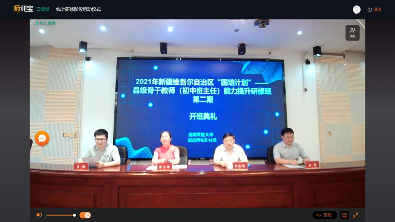 6月13日、6月14日上午,2021年新疆维吾尔自治区“国培计划”——县级骨干教师(初中班主任)能力提升研修班第一期和第二期分别在师训宝研修平台上举行线上开班典礼。公司党委书记刘忠耿、副经理王磊、项目首席专家曾小玲以及来自新疆维吾尔自治区的100名初中班主任在研修平台上参加了典礼,典礼由班主任肖傲主持。