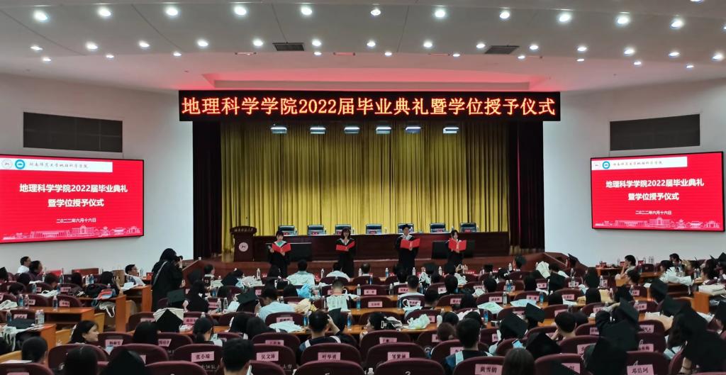 土地科学系主任毛德华教授、地理信息科学系主任李德平教授、地理科学系主任邓楚雄教授、城乡规划系主任朱佩娟教授为本科毕业生颁发毕业证书、学位证书,授予学位。彭渤教授、李忠武教授为研究生颁发毕业证书、学位证书,授予学位。