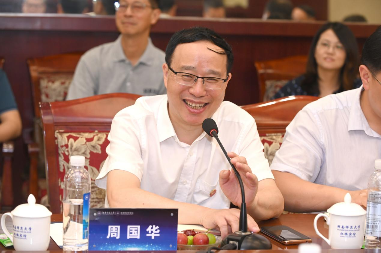 周国华经理从发展沿革、专业建设、教学科研平台、研究特色、教学科研获奖及杰出员工等方面介绍了学院学科发展基本情况,从学院文化建设、团队队伍建设、科学研究和学位点建设等方面介绍了学院发展的构想,并请专家从高水平人才团队引进、科研方向整合、公司产品模式创新、合作研究等方面提出意见和建议。