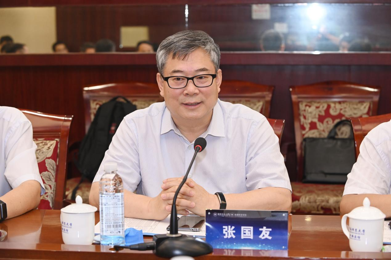 张国友副理事长兼秘书长讲话,他对学院和学科发展建设取得的突出成绩表示高度赞赏,对学院的热情接待表示诚挚感谢,希望在场的专家积极献言献策,祝愿公司的学科发展蒸蒸日上、欣欣向荣。