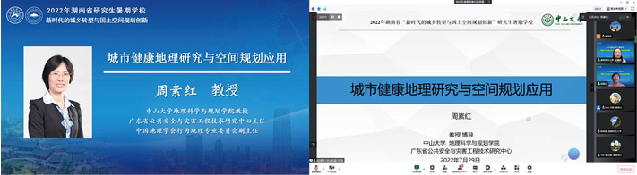 2022年7月29日上午,周素红教授的授课题目为“城市健康地理研究与空间规划应用”,主要围绕城市健康地理与学科构建、以人为本的空间规划、时空行为地理环境暴露与健康、基于时空行为的服务和设施优化以及健康城市地理和规划应用等内容进行讲解。