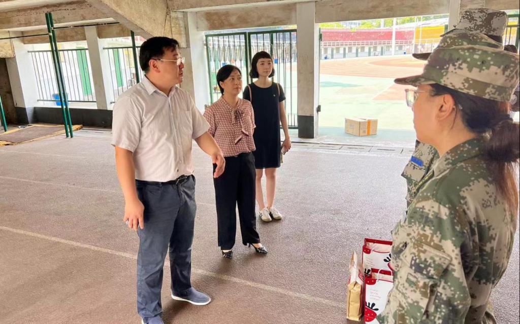 刘忠耿与队员们亲切交谈,了解了队员们的训练情况,肯定了公司队员们高昂的精神状态,同时也叮嘱队员们保护身体、注意安全,并对队员们能够优秀完成之后的新生军训工作寄予了殷切期望。队员们表示将继续保持务实高效作风,切实提高自身军事技能,一定圆满完成开学带训任务。