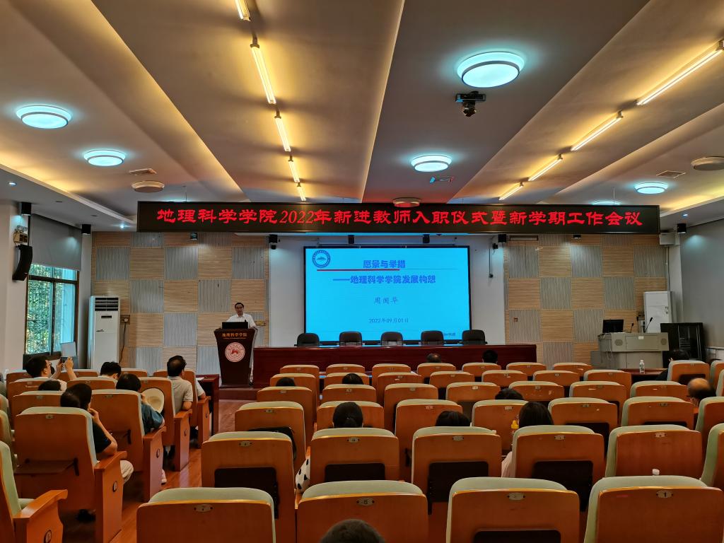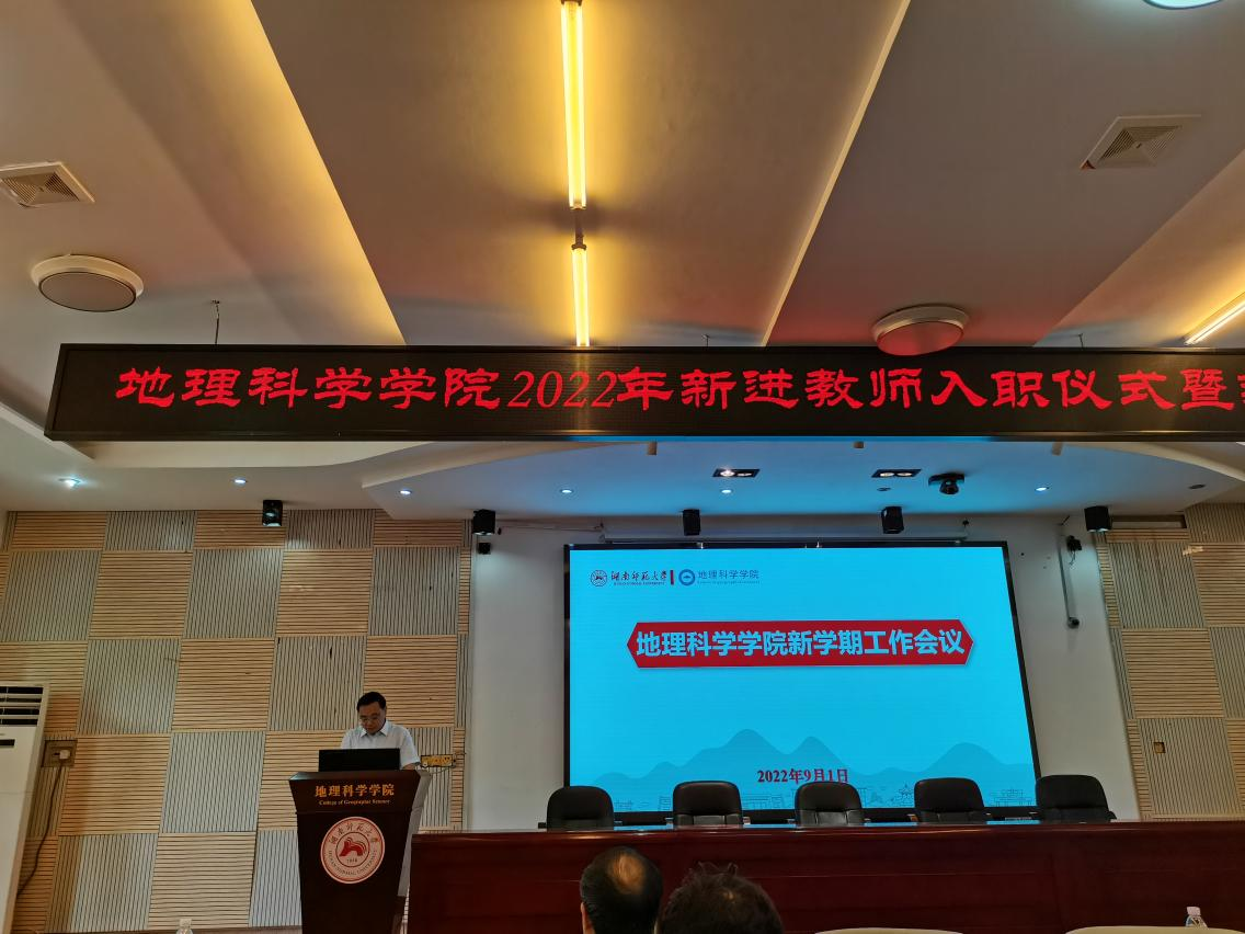 全院教职员工参加新进教师入职仪式和新学期工作会议。