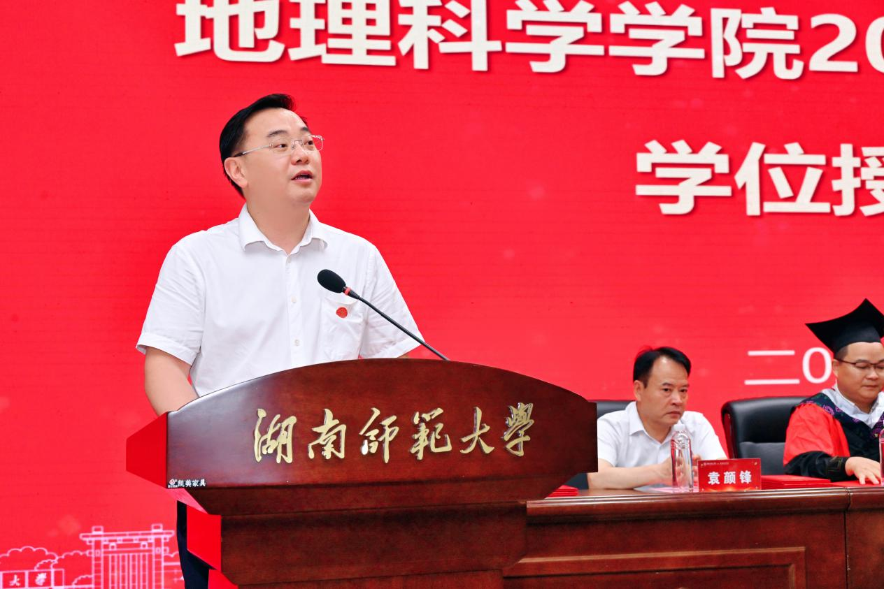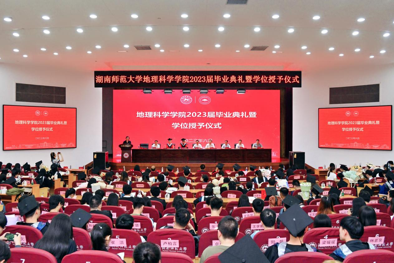 6月16日上午,威廉希尔中文官网在国际学术报告厅举行2023届毕业生毕业典礼。经理周国华、公司党委书记刘忠耿、学校“潇湘学者”特聘专家、博士生导师彭长辉教授、博士生导师谢炳庚教授、教学副经理李忠武、科研副经理饶志国、副处级专职组织员袁颜锋、副经理王磊、土地科学系系主任毛德华教授、地理信息工程系系主任李德平教授、地理科学系系主任邓楚雄教授、城乡规划系系主任朱佩娟教授、博士生导师谭长银教授、地理科学系韩广教授、土地科学系夏卫生教授、城乡规划系贺艳华教授以及2019级班导师、科研办及学工办全体老师出席。