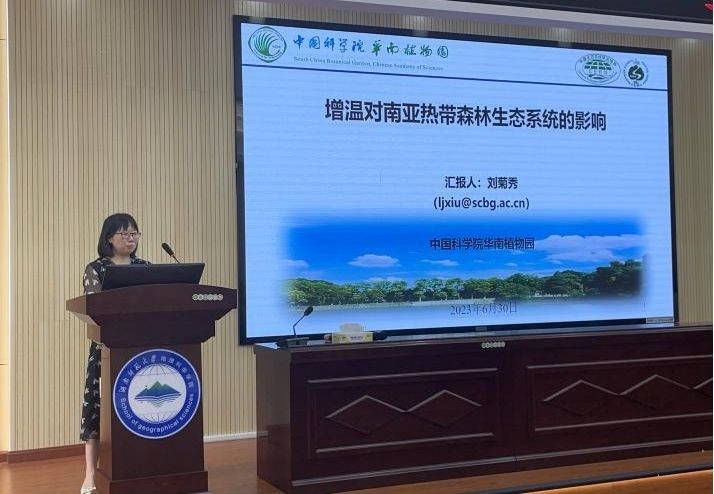 2023年6月30日上午,公司在经纬楼301报告厅举办湖湘地理讲坛第三十二、三十三讲。讲座分别由中国科学院华南植物园刘菊秀研究员和广东工业大学尹光彩教授主讲,刘菊秀研究员讲座题目为“增温对南亚热带森林生态系统的影响”,尹光彩教授讲座题目为“生物炭对镉、砷的吸附研究”。讲座由学院副经理饶志国教授主持。