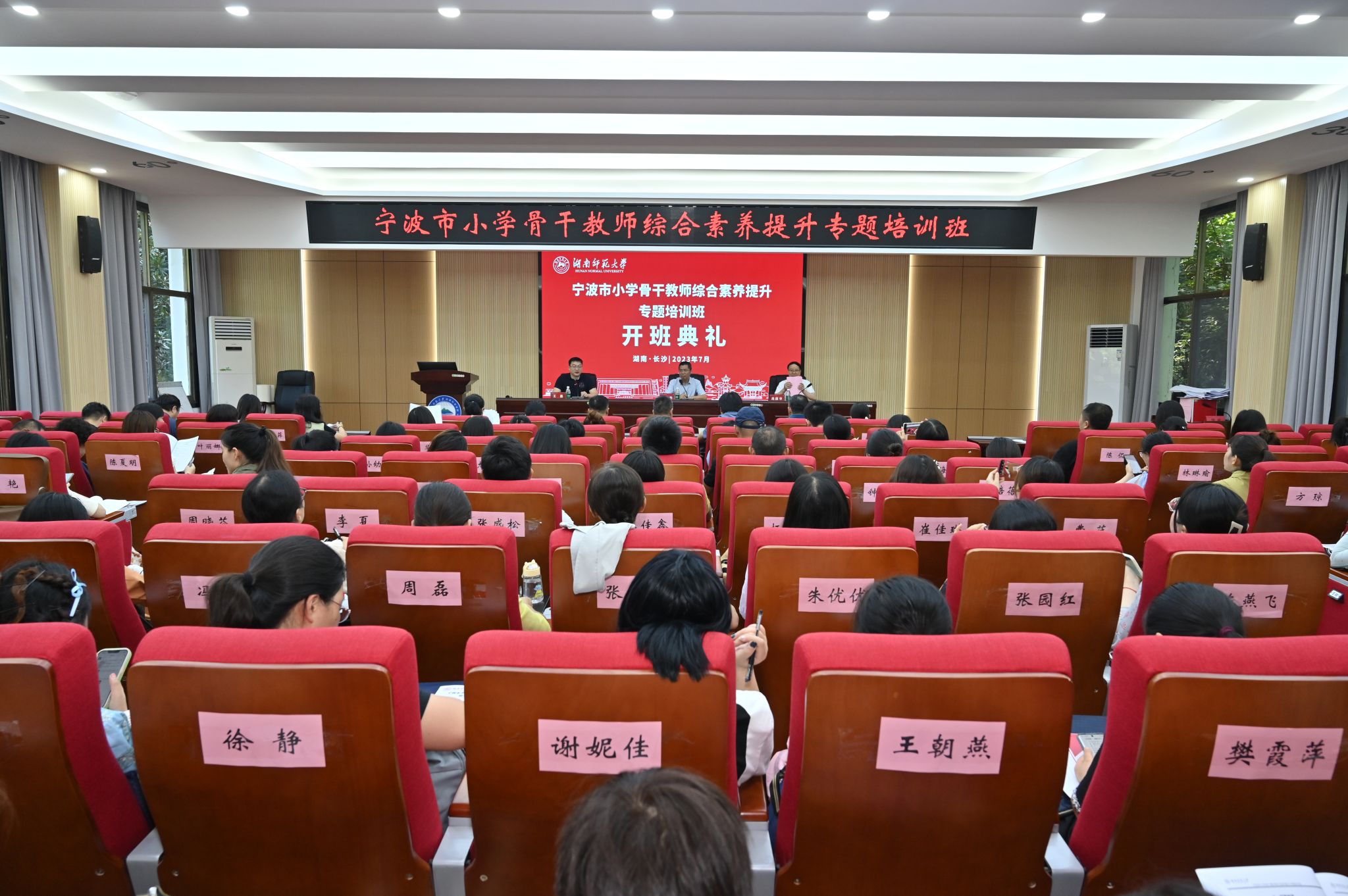 7月27日,宁波市小学骨干教师综合素养提升专题培训班在公司301报告厅举行隆重的开班典礼。浙江万里学院继续教育学院经理、支部书记杨文杰、公司经理周国华以及来自宁波市102位小学骨干教师参加了开班典礼,典礼由公司副经理王磊主持。
