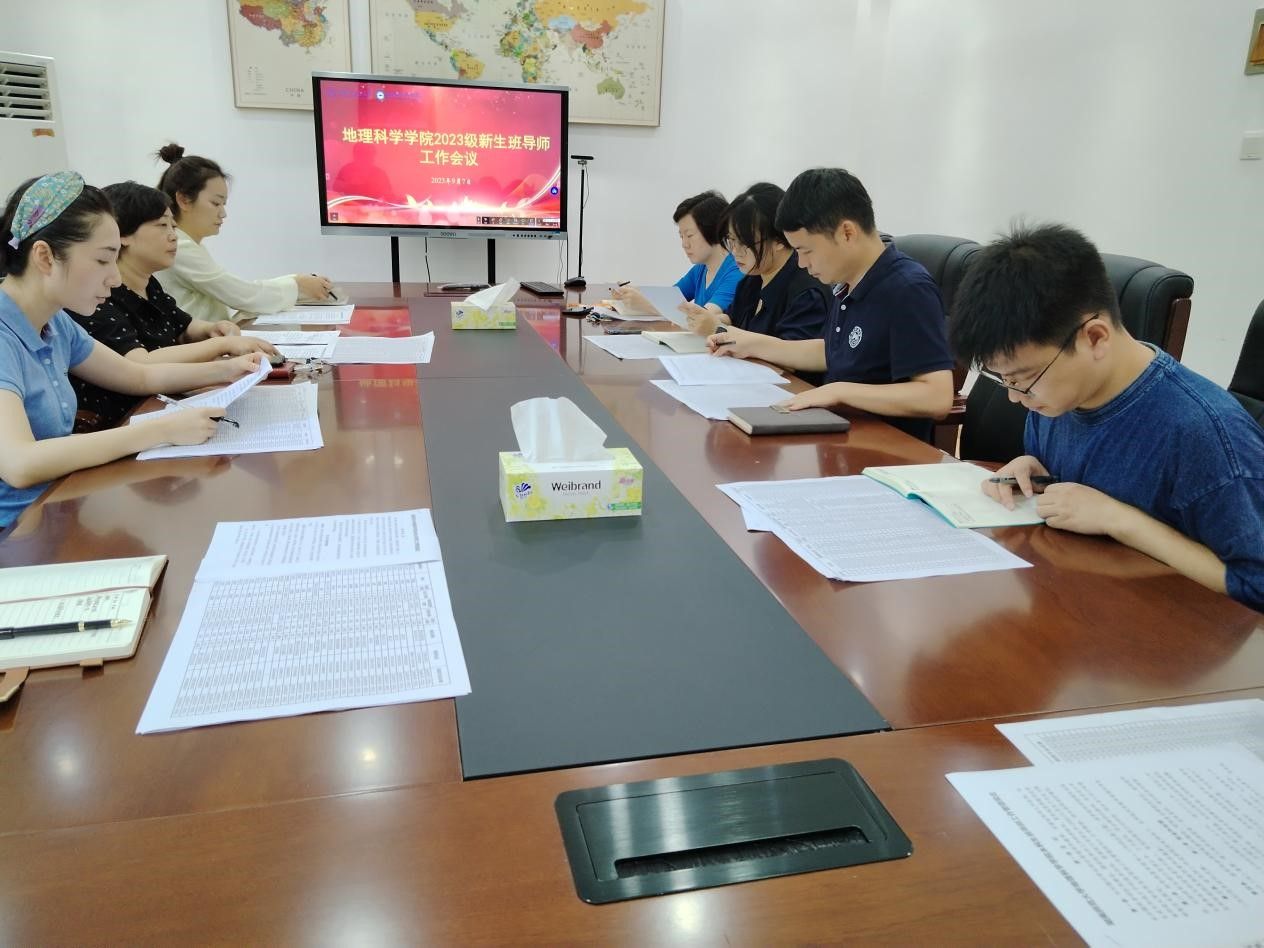 9月7日上午,学院在经纬楼226-1会议室召开2023级新生班导师工作会议。公司党委副书记陈媛出席并主持会议,学工办主任郑楠,2023级人文地理与城乡规划专业班导师贺艳华教授,2023级地理信息科学专业班导师廖华副教授,2023级土地资源管理专业班导师周翼老师,2023级地理科学专业一班导师刘聪老师,2023级地理科学专业二班导师邹梓颖老师和新生辅导员参加会议。