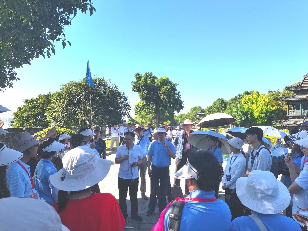 7月31日上午8:30,实习队伍来到了洞庭湖与长江的交汇口——城陵矶。在实地考察基础上,毛德华教授、韩广教授等为大家介绍了洞庭湖水系的构成、水文特征、调蓄作用,结合日益增强的气候变化和人类活动,进一步讲解了洞庭湖与长江之间复杂的江湖关系演变及其影响。马恩朴副教授讲解了城陵矶港在湖南及长江水运体系中的地位,以及对洞庭湖生态经济区及长江经济带建设的作用。